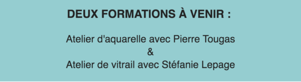 Deux formations à venir : Atelier d’aquarelle avec Pierre Tougas et atelier de vitrail avec Stéfanie Lepage